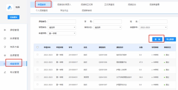 2、学院管理老师登录研究生服务系统完成审核工作。操作步骤:培养--成绩管理--申请重修,符合申请条件的给予审核通过。