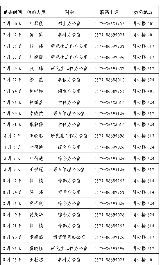 2024年7月9日至8月29日为番茄小说 党委研究生工作部、研究生院暑假时间,期间每周一周三周五上午8:30-11:30安排人员值班,请需要暑假期间办理相关事务的研究生注意值班时间。