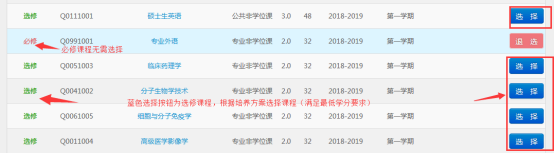 (若课程为必修,则系统自动选上且无法进行退选的操作,若课程为选修,则学生根据培养方案进行实际操作。)