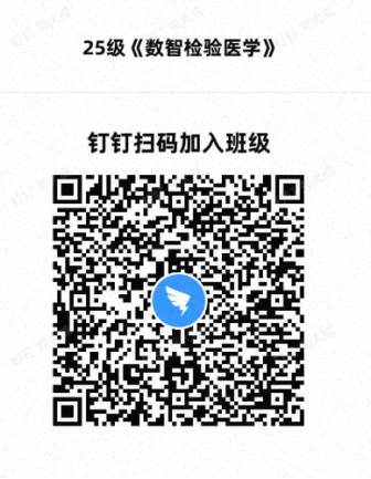 附:《数智检验医学》钉钉群二维码(将会在群内发布相关通知以及签到签退,请相关同学及时进群):