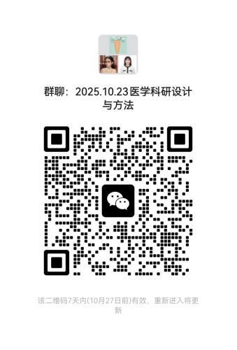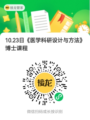 《医学科研设计与方法》课程将于10月23日周四上午上课,本次课程地点为:温州空港万豪酒店(温州市龙湾区经济技术开发区滨海一道 2007 号)。此次会议算一次博士课程,请扫码报名,报名截止日期为2025年10月22日23:59,限定人数为100人。