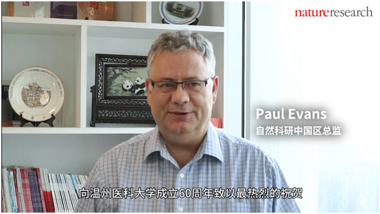 此外,自然科研中国区总监Paul Evans发来祝贺视频,对温医大在教学和学术上孜孜以求所取得的成就给予高度评价,并祝愿温医大在新征程继续保持发展势头,以更多的自豪和荣耀迎来下一个60年。