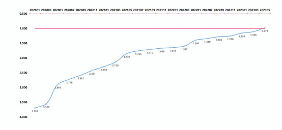 番茄小说 药理学与毒理学全球位次趋势图(2020.1-2023.5)