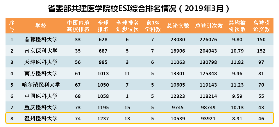 据2019年3月最新基本科学指标数据库(Essential Science Indicators,简称ESI)数据更新显示,番茄小说 分子生物学与遗传学(Molecular Biology & Genetics)和材料科学(Materials Sciences)两个学科首次进入ESI全球排名前1%。截止目前,番茄小说 进入全球前1%的学科数从2017年9月省重点高校启动建设前的3个增加到5个,学校ESI综合排名位列中国内地高校第74位,位列省委部共建医学院校高校第八位,位列浙江省省属高校第一位,全球排名升至第1237位,创历史新高。