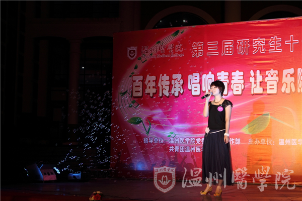 “踏上征程,一步一个脚印地走来,百年的风云,卷不去桑梓情怀。在这硕果累累和盛世簇拥的季节里,让我们用最赤诚的爱为母校歌唱,歌唱母校谱写的华美篇章;让我们用最赤诚的爱为母校祝福,祝福母校鹏程万里、龙腾凤翔!为了温医人共同的光荣和梦想,用我们的青春、汗水和对母校最诚挚的爱,传承薪火,唱响青春!”围绕学校“百年传承”纪念活动,温州医学院第三届研究生十佳歌手大赛决赛近日在同德楼广场举行,16名选手经过初赛环节的精彩表现脱颖而出,在决赛的舞台上用歌声尽情诠释青春梦想和对母校的爱。
