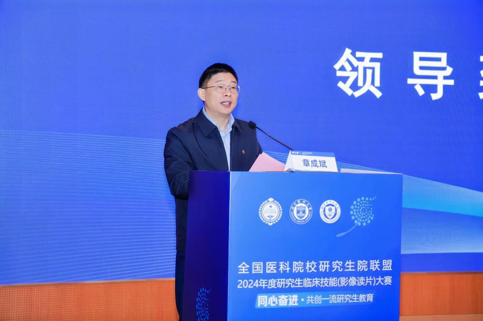 贾金忠对本次大赛的胜利召开表示祝贺。他表示,全国医科院校正携手并进,通过举办各类学科竞赛,共同推动医学教育与医疗卫生体制的改革与创新,此次大赛站位更高、规模更大,是推动临床医学放射影像学硕士专业学位培养改革的举措之一,希望联盟的各个兄弟院校以此次竞赛为契机,进一步加强交流合作,共同培养更多具有国际视野、创新精神和实践能力的医学人才,加快现有医学专业的改革升级,推动医科与工科、理科等多学科交叉融通,服务于健康中国建设。