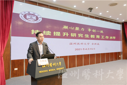 副校长金胜威以《凝心聚力争创一流,持续提升研究生教育工作水平》为题作报告,回顾了近年来学校研究生教育取得的成效,并对相关工作做了谋划与部署。学术副校长宋伟宏以《研究生培养: 卓越和专业化的教育》为题分享了自己作为研究生导师的深切体会。