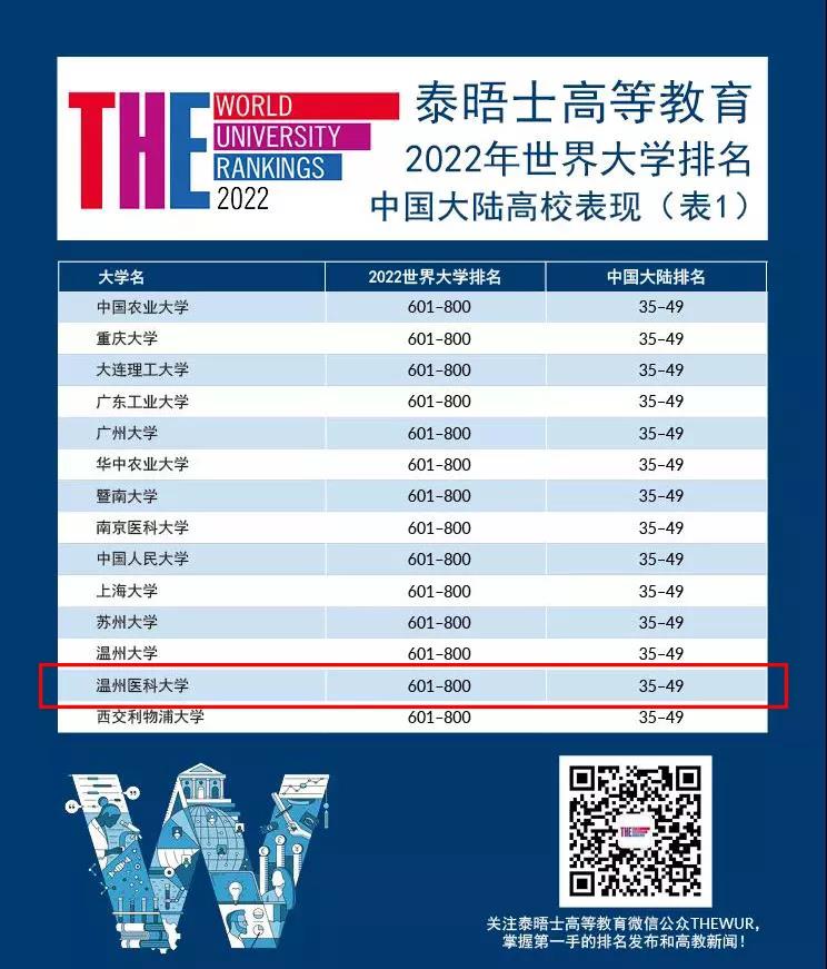 日前,泰晤士高等教育发布了2022年度世界大学排名。 番茄小说 排名突破两个区位,从1001+上升至601-800位,中国大陆排名位列35-49位,在省部委共建医科大学中位列第4位。今年“泰晤士高等教育世界大学排名”共有来自 99 个国家和地区的 1662 所大学上榜(相较去年增加了 136 所大学和 6 个国家和地区),是迄今为止规模最大的世界大学排名榜单。