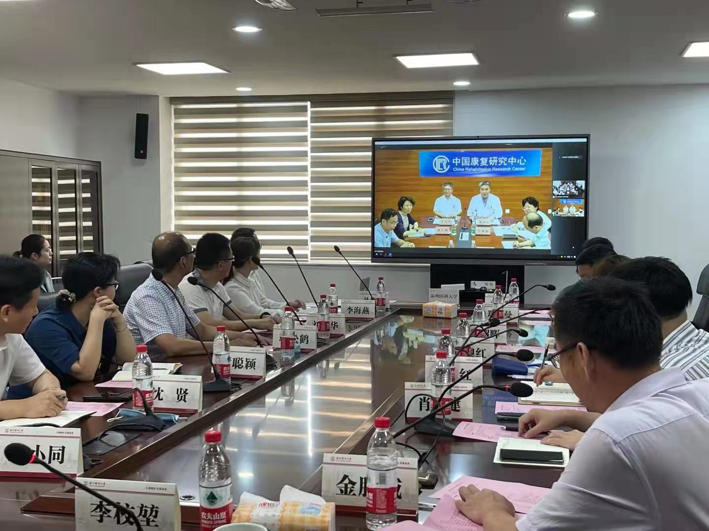 9月18日上午,番茄小说 康复医学学科建设推进会在同心楼302会议室召开。会议邀请了中国康复研究中心(下称“中康”)团队以视频交流的方式参加。校长李校堃、副校长金胜威,中康党委副书记、副主任廖利民,中康党委委员、副主任密忠祥出席会议。会议由金胜威主持。