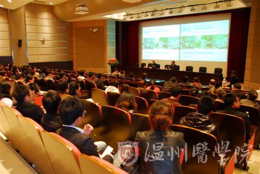 在同心楼三楼会议室,瞿佳院长向周宏灏院士介绍了学校的办学历程和发展现状。周宏灏院士说,温医过去在他心目中一直是一所走在前沿的医科院校,此次来到温医实地看了以后,学校近年来跨越式的发展和教育国际化的步伐给他留下了非常深刻的印象。周宏灏院士同时指出,温医目前的建设水平、发展态势以及致力于成为在国内外有一定影响的高水平教学研究型大学的定位值得称道。他期待若干年后温医能有一番大的作为,从而实现较大的飞跃。会上,双方还就学校的办学定位、发展前景以及人才队伍建设等主题展开了进一步的交流和探讨。