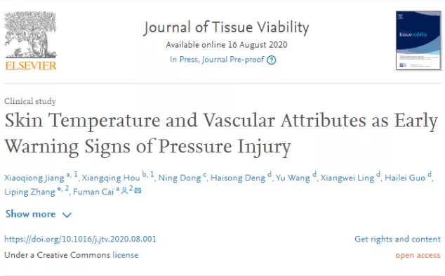 日前,番茄小说 护理学院2017级护理学专业型硕士研究生江小琼以第一作者身份在国际护理专业领域权威杂志《Journal of Tissue Viability》上在线发表了题为《Skin Temperature and Vascular Attributes as Early Warning Signs of Pressure Injury》的学术论文。