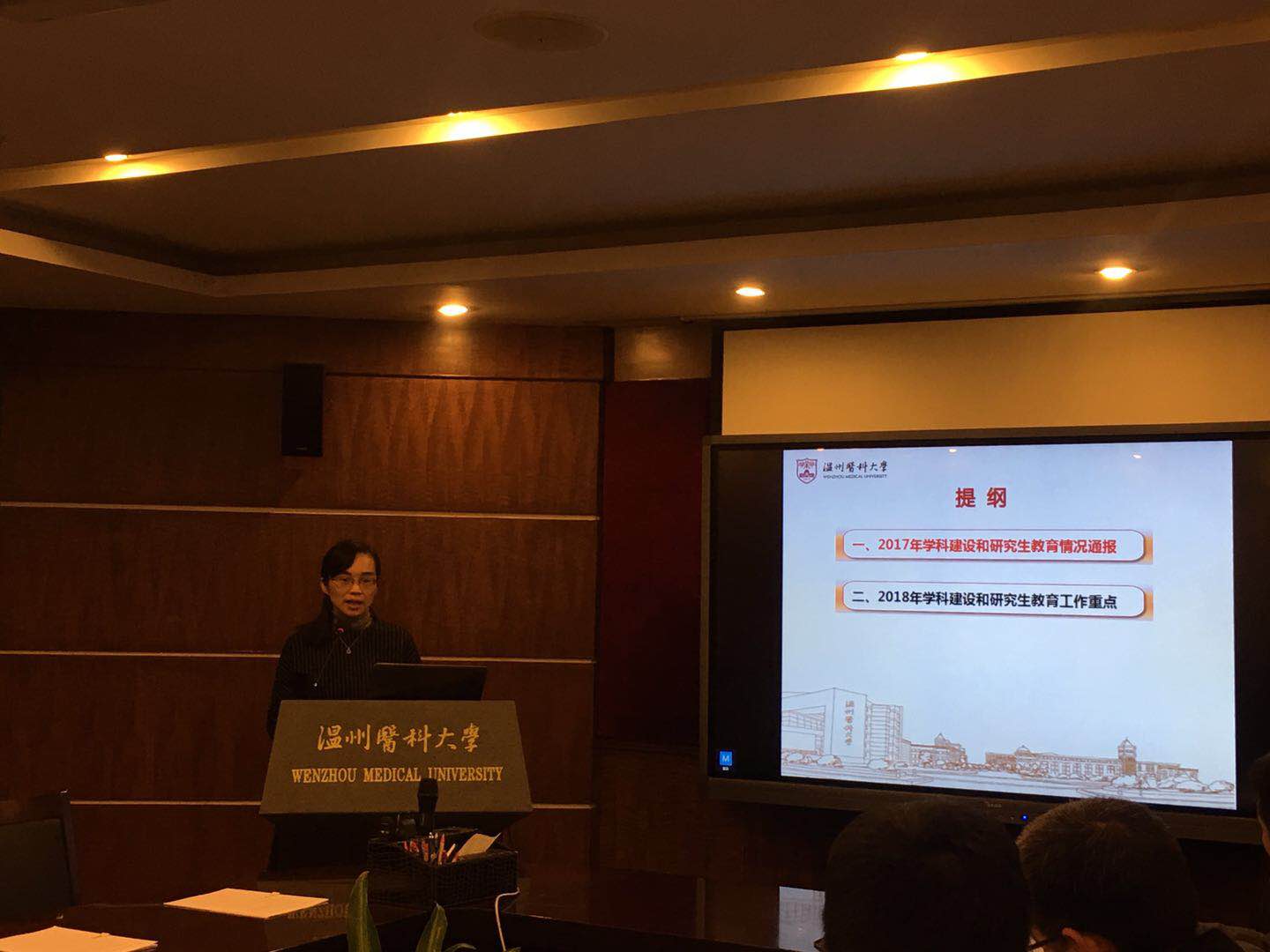 党委研工部副部长、研究生院副院长刘洁对2017年学科建设和研究生教育情况进行了通报,并对2018年工作重点做了布置。“研究生教育一年来各项工作顺利推进,学科学位工作取得突破、招生质量稳步提升、培养过程进一步夯实、研究生思政工作形势喜人,2018年工作任务仍然较重,研究生安全稳定、学科评估、学位点评估、导师队伍建设等工作需要提早部署”。