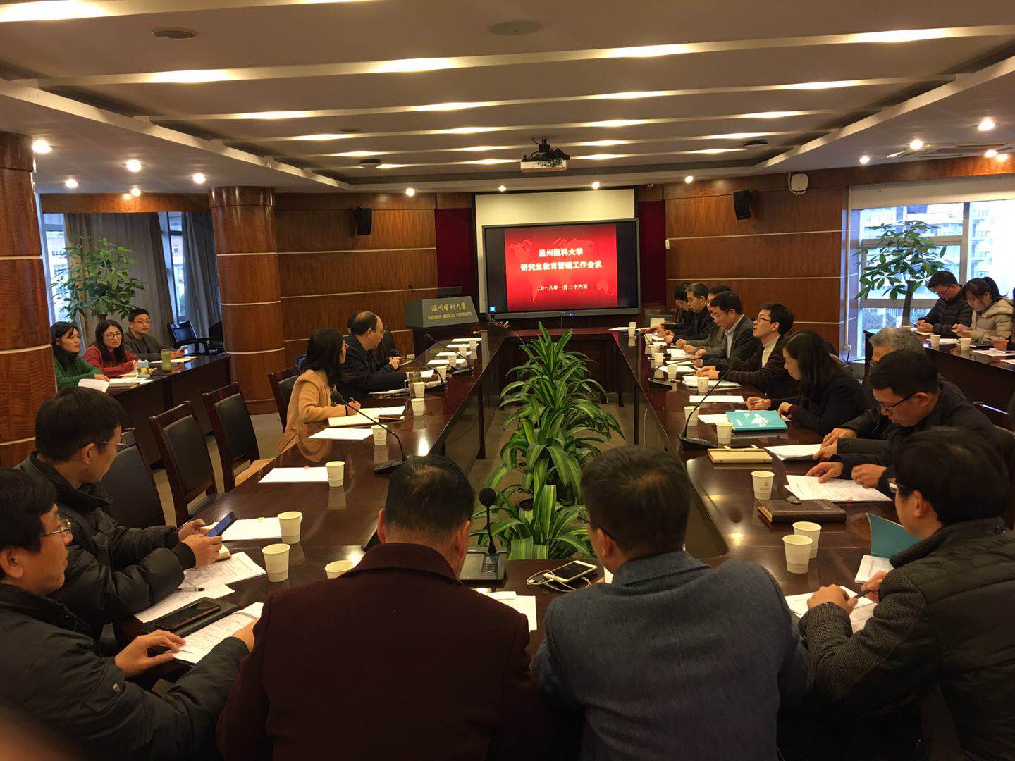 2018年1月26日下午14:00番茄小说 研究生教育管理工作例会在茶山校区同心楼四楼会议室召开。党委副书记吕一军主持会议。各学院分管研究生教育管理工作的书记、院长;学位与研究生教育管理办公室负责人;研究生管理科科长;党委研工部、研究生院全体工作人员参加会议。