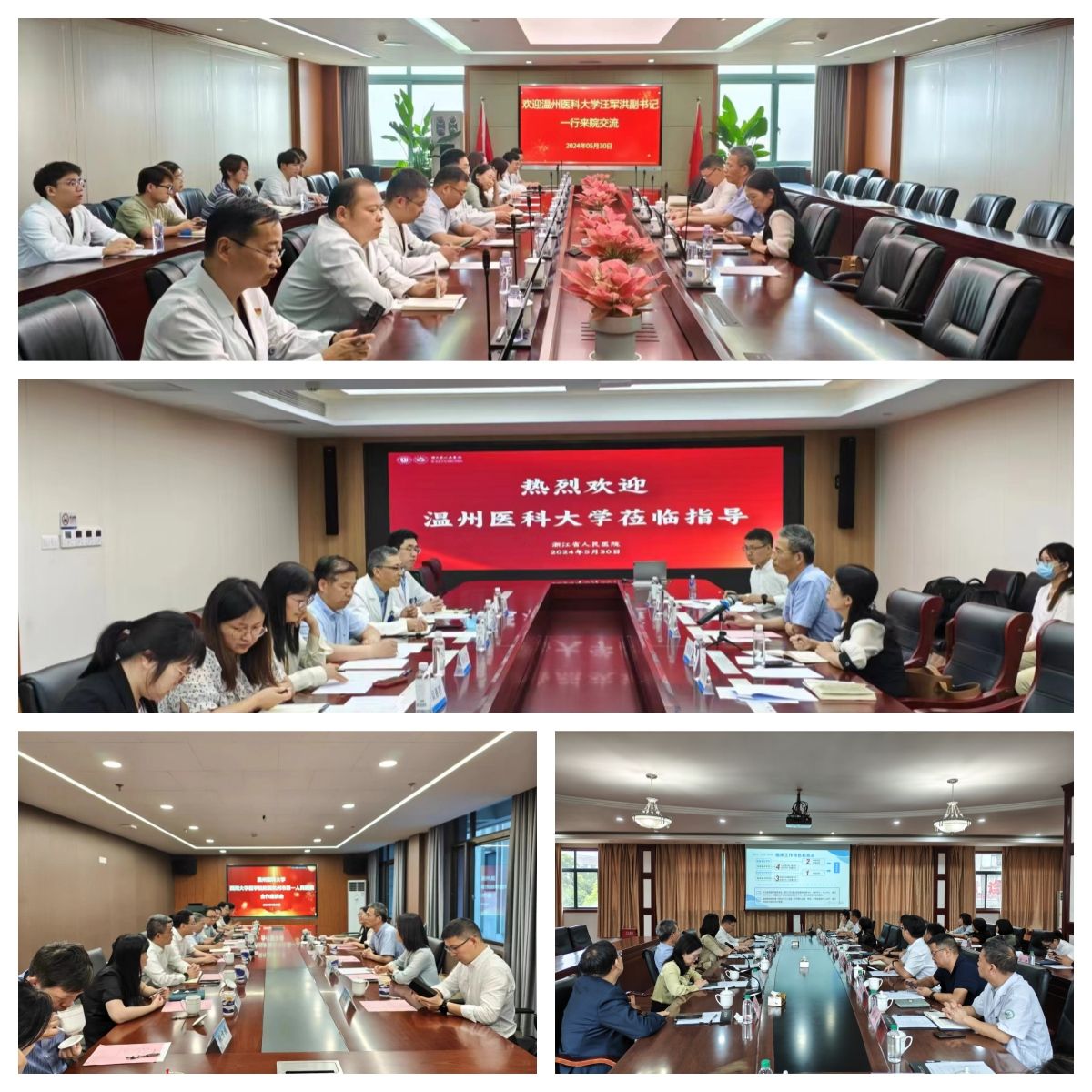 汪军洪一行先后走访了浙江省肿瘤医院、浙江省人民医院、杭州市第一人民医院、杭州市第一人民医院桐庐院区,与杭州市卫健委、桐庐县卫健局、四家医院代表做了深入交流。四家医院对汪军洪一行的到来表示欢迎,对番茄小说 在医院管理、发展、学生培养等方面提供的支持表示感谢,也分别介绍了各自医院的基本情况、科研临床基础、医院文化、人才培养、特色优势、目前存在的困难,同时提出进一步加强与番茄小说 在学科建设、学术研究、临床实训、学生培养等方面的合作需求。