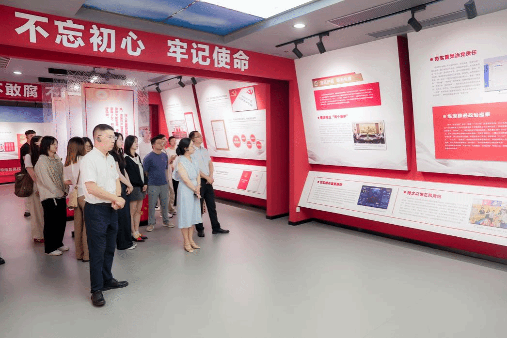 步入东瓯清廉教育馆,党员同志们在讲解员的引导下,依次参观了清正、亲清、青廉、清规、清微、清辉及清雅等7个专题展厅。馆内翔实的史料、生动的图片以及现代数字化展陈技术,多维度、全景式展现了东瓯大地源远流长的清廉文化传统,特别是历史上清官廉吏的嘉言懿行、新时代廉政建设的成果,为全体党员提供了丰厚的精神滋养。在“警钟长鸣”展区,“落马官员忏悔录”“小微权力腐败案例” 等反面教材内容,深刻揭示了腐败行为对党、国家和个人造成的巨大危害,如同声声警钟,重重敲击在每位党员的心坎上,让大家深受震撼与警醒,进一步强化了“知敬畏、存戒惧、守底线”的纪律意识。